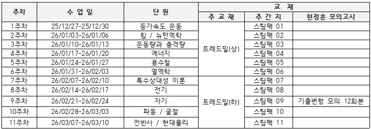 2027 물리Ⅰ 시즌Ⅰ 트레드밀 Treadmill 커리큘럼