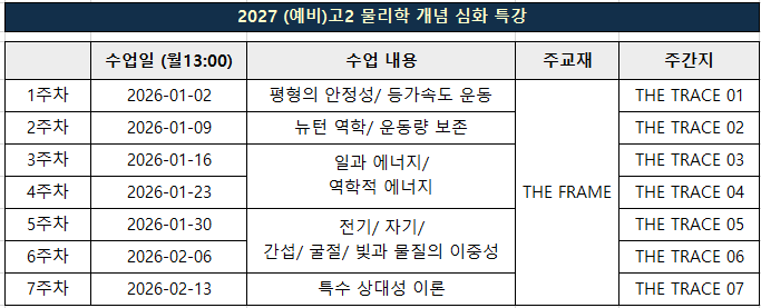 ◎ 2027 고2 물리학 내신특강 수강생 안내사항 ◎