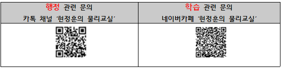 8. 행정 문의 : 카카오톡 채널 '현정훈의 물리교실' (매주 목요일 휴무 / 아래 QR 접속)
